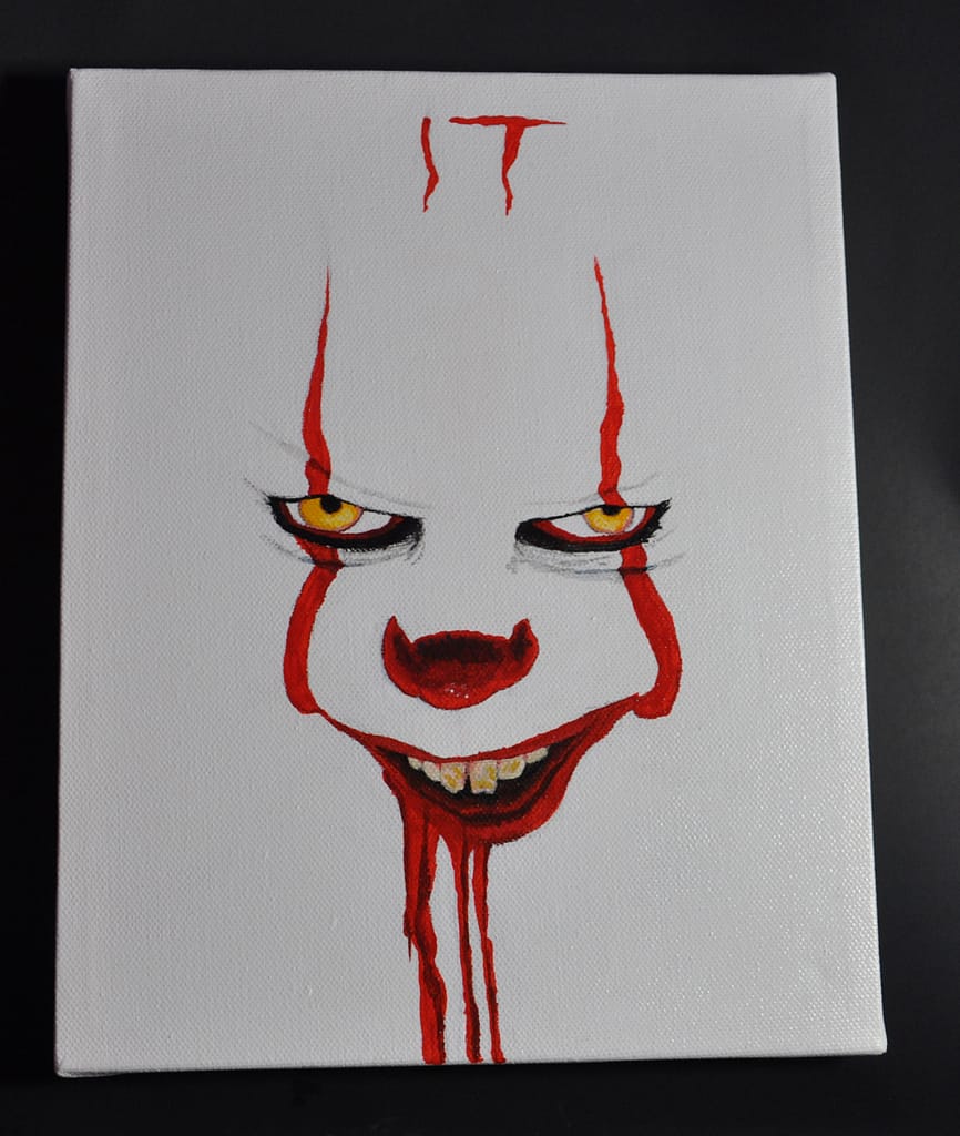 Above is the sketch based of an “IT” movie poster. I used a pensile so I could erase any mistakes and it should be difficult to notice under the painting.